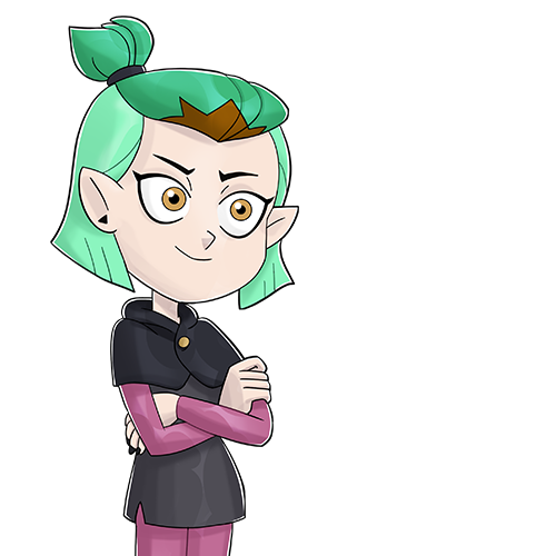 Amity Blight moves her finger in a circular motion, performing a magical vow, granting herself and all allies an HP Shield.