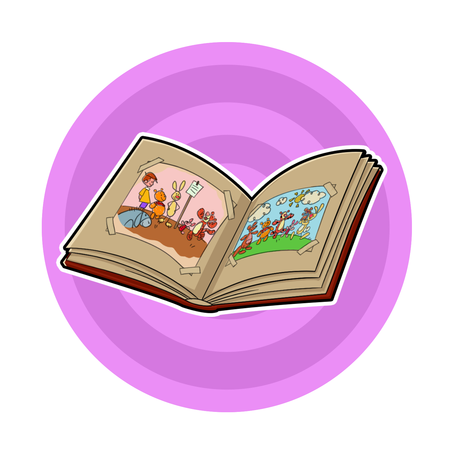 Piglet flips through his memory scrapbook as glowing illustrations float upward, Healing himself and all allies for some HP and Cleansing them.